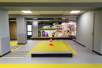 - Διαθέτει ειδικά διαμορφωμένες διαδρομές σήμανση stop, διαβάσεις πεζών, πεζοδρόμιο και τη δυνατότητα μεταβολής του βαθμού δυσκολίας που επιθυμούμε, με τη βοήθεια κώνων που διαμορφώνουν διαφορετικές κατευθύνσεις και διαδρομές.